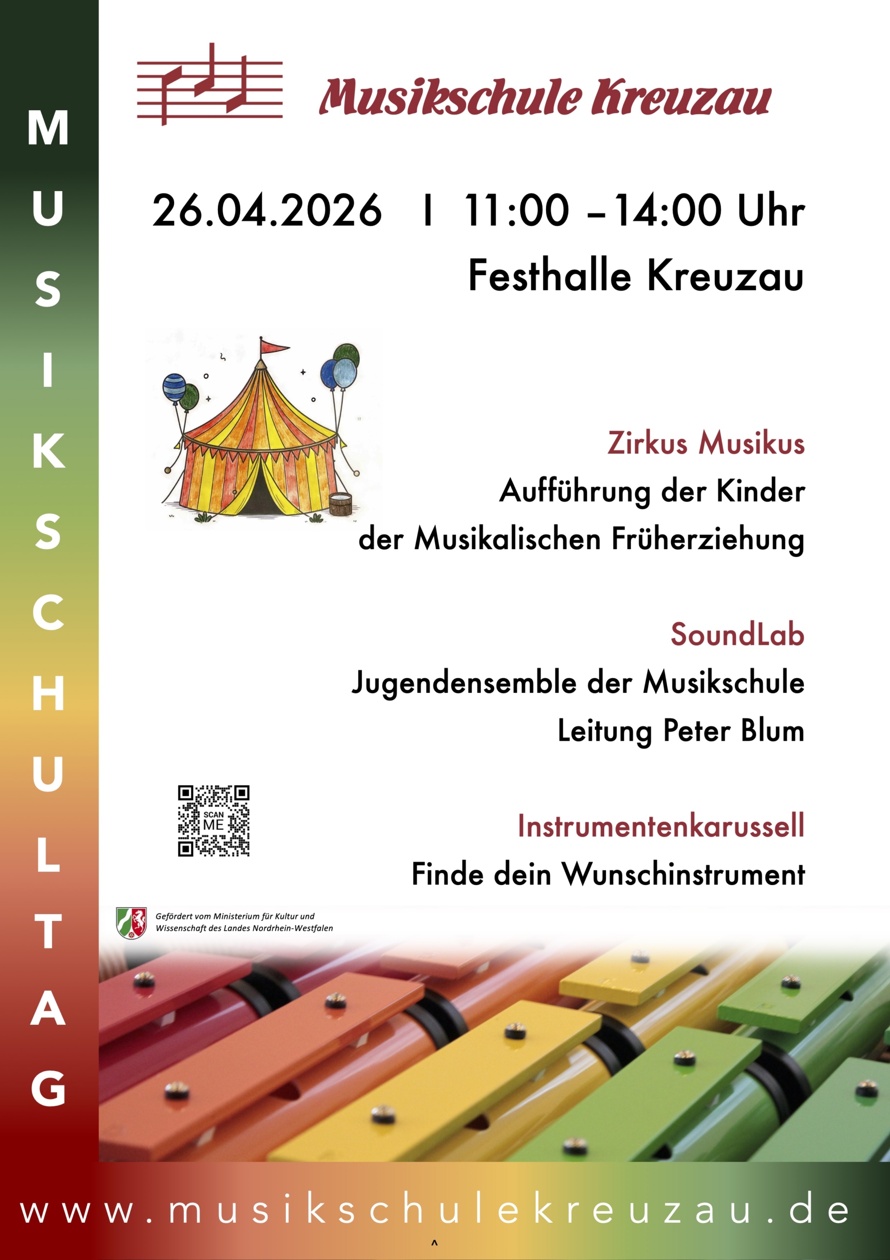 Am 26.4.2026 lädt die Musikschule Kreuzau herzlich zum Musikschultag ein! Ein Tag, an dem Musik lebendig wird – für Jung und Alt, Anfänger und Fortgeschrittene, Neugierige