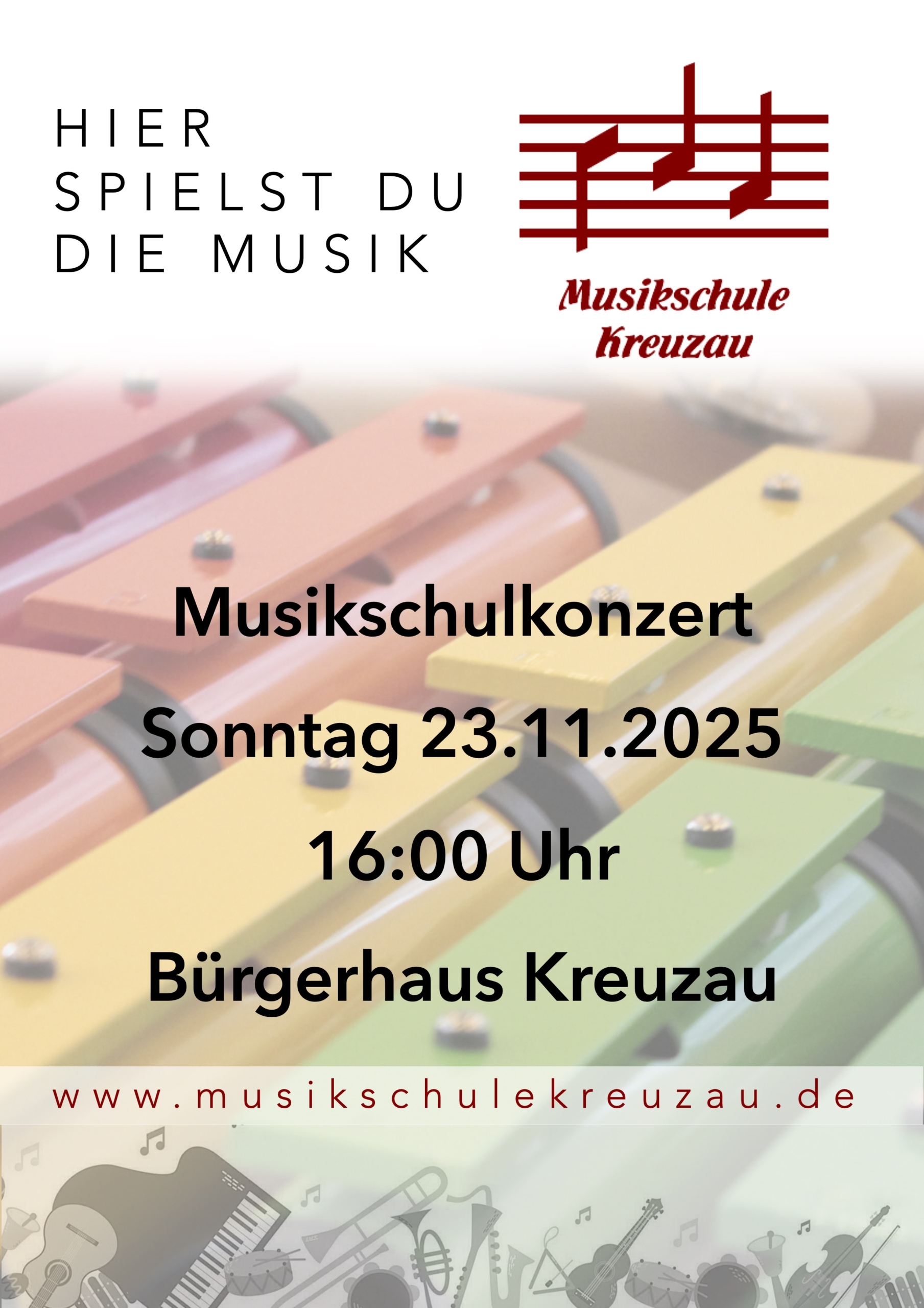 Am 23. November um 16 Uhr laden wir euch herzlich zum Musikschulkonzert im Bürgerhaus Kreuzau ein!